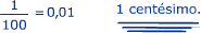 1 décimo dividido em 10 partes => é o mesmo que 1 unidade dividida em 100 partes.