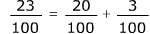 23 centésimos é o mesmo que 2 décimos mais 3 centésimos.