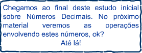 Os algarismos que colocamos após a vírgula, ou seja, à sua direita são chamados de casas decimais. Pelo que vimos, você já deve ter percebido que cada casa decimal é 10 vezes menor que a casa decimal que a antecede. Além disso, veja que não há limite para a quantidade de casas decimais que um número pode ter. Inclusive, você aprenderá que existem números com infinitas casas decimais!