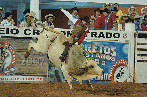 Nos rodeios, comuns em várias regiões do Brasil e das Américas, bois e cavalos são submetidos a provas de montaria, laço e perseguição.